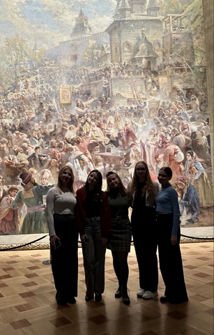 После подведения итогов студенты вместе с куратором посетили зал с картиной Константина Маковского «Воззвание Минина».