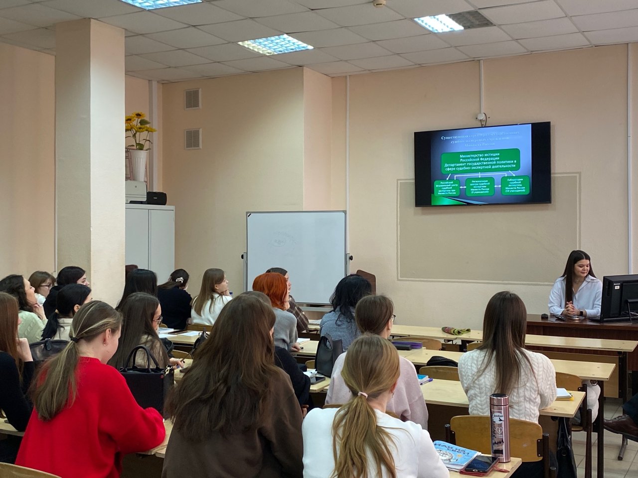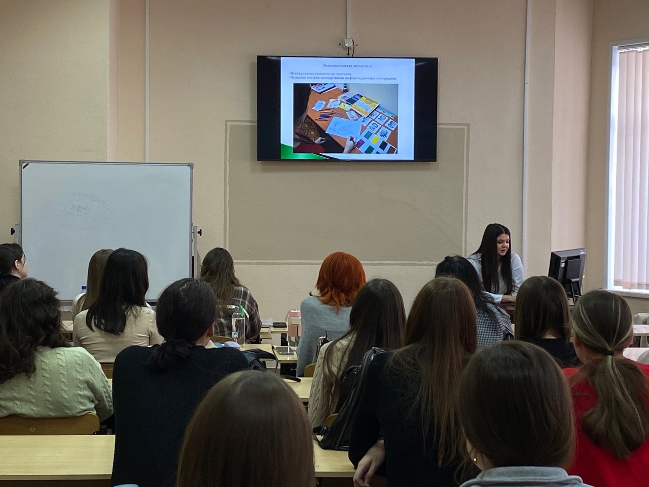 4 февраля 2026 года начальник отдела ФБУ Приволжского РЦСЭ Минюста России Яна Михайловна Чернышова провела занятие со студентами 3-го курса кафедры судебной экспертизы юридического факультета по теме «Система и функции судебно-экспертных учреждений Минюста России» в рамках дисциплины «Теория судебной экспертизы».