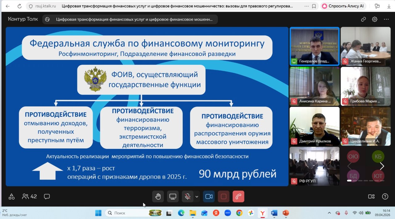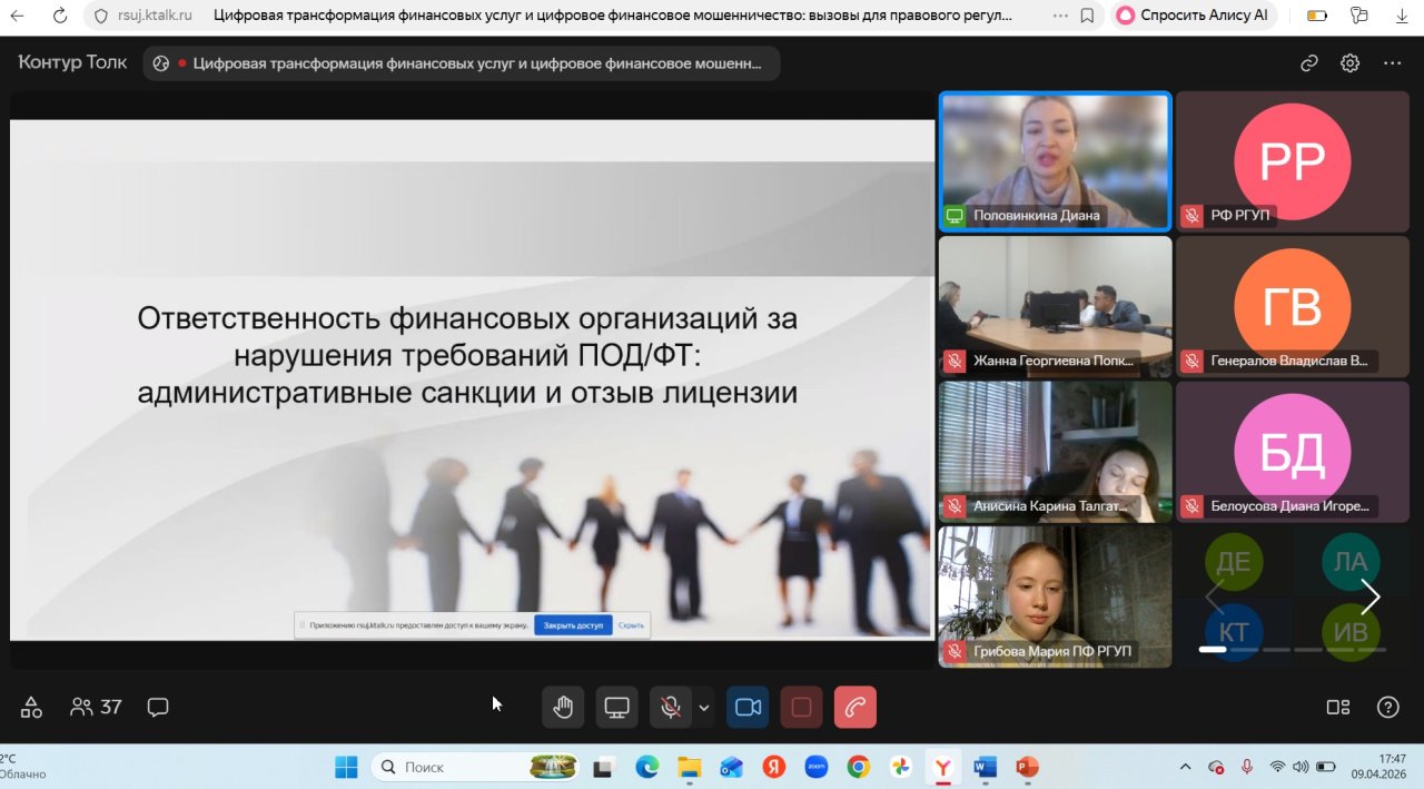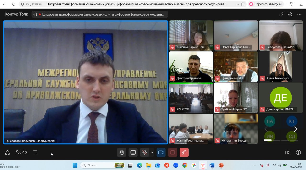 9 апреля 2026 года на базе Приволжского филиала РГУП им. В.М. Лебедева прошел межвузовский студенческий круглый стол на тему «Цифровая трансформация финансовых услуг и цифровое финансовое мошенничество: вызовы для правового регулирования». Организаторами Межвузовского студенческого круглого стола стали ННГУ им. Н.И. Лобачевского и вузы-партнеры (РГУП им. В.М. Лебедева, Российская академия народного хозяйства и государственной службы при Президенте Российской Федерации, Университет имени О.Е. Кутафина (МГЮА), Саратовская государственная юридическая академия, ОмГУ им. Ф.М. Достоевского), три из них являются участниками Международного сетевого института в сфере ПОД/ФТ.