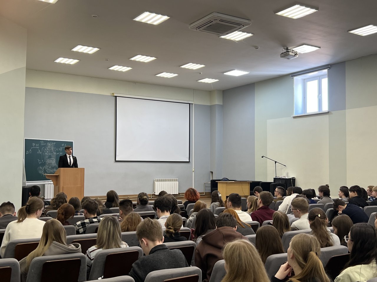 Владимир Викторович рассказал присутствующим на мероприятии студентам о системе судов в Российской Федерации, системе судов, функционирующих в Нижегородской области, требованиях к замещению должности судьи, привел личные примеры из юридической практики и рассказал о своем пути становления в качестве федерального судьи.