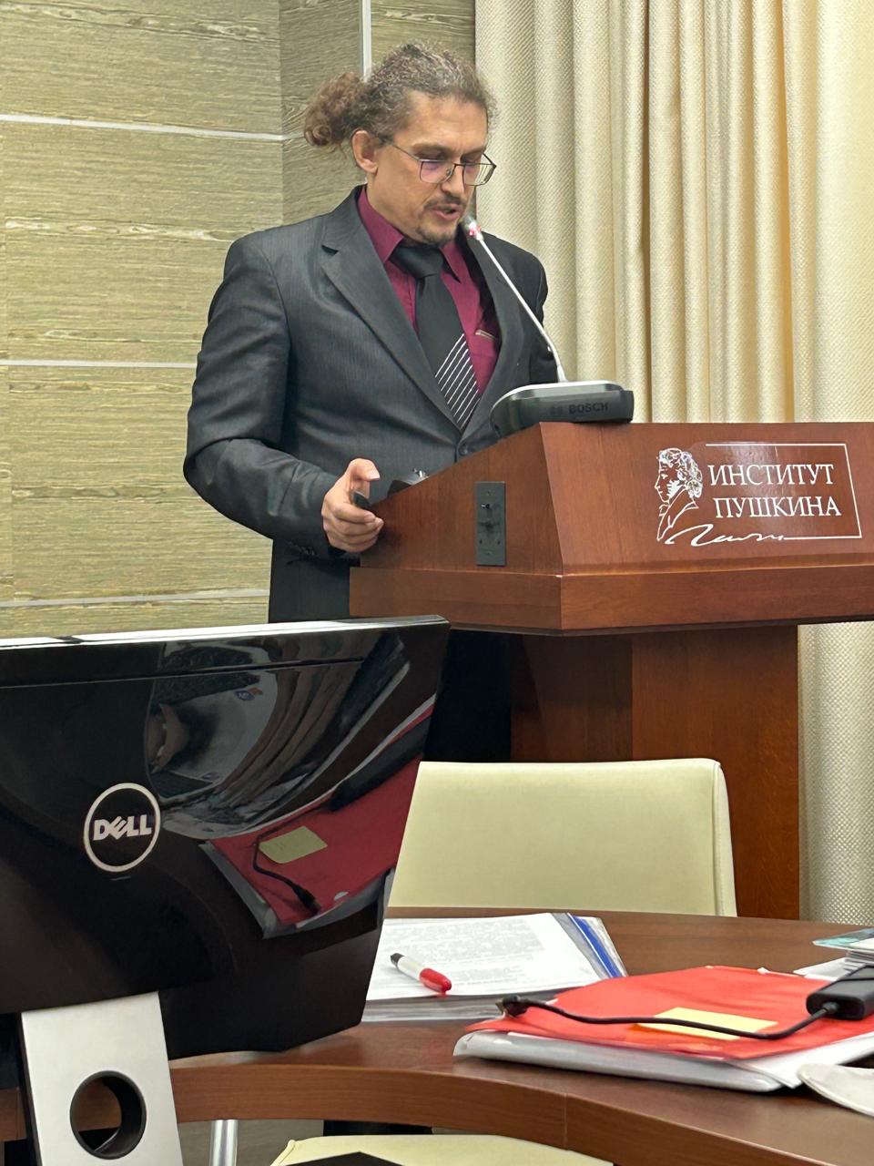 8 октября на заседании диссертационного совета Государственного института русского языка им. А.С. Пушкина Руслан Иванович защитил диссертацию на тему: «Языковые, коммуникативно-прагматические и лингвосемиотические особенности поликодовых текстов с русскоязычным вербальным компонентом» под научным руководством доктора филологических наук, профессора, профессора кафедры судебной экспертизы Тимура Беньюминовича Радбиля (научная специальность 5.9.5. — Русский язык. Языки народов России).